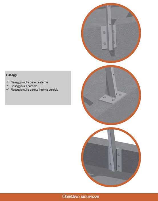 Inoltre il sistema PLUTEUS soddisfa tutte le esigenze di installazione, in quanto può essere fissato a filo parete, distanziato oppure auto-portante per chi non vuole effettuare lavori che possano intaccare l’integrità delle strutture e del manto impermeabile delle coperture.