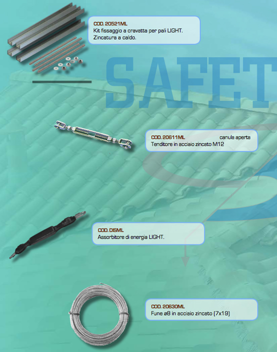 Viste le esigenze del mercato, Safetyline srl ha concepito il sistema LIGHT, che mantiene le stesse caratteristiche statiche della linea MULTIPLEX, ma con un valore economico più basso.